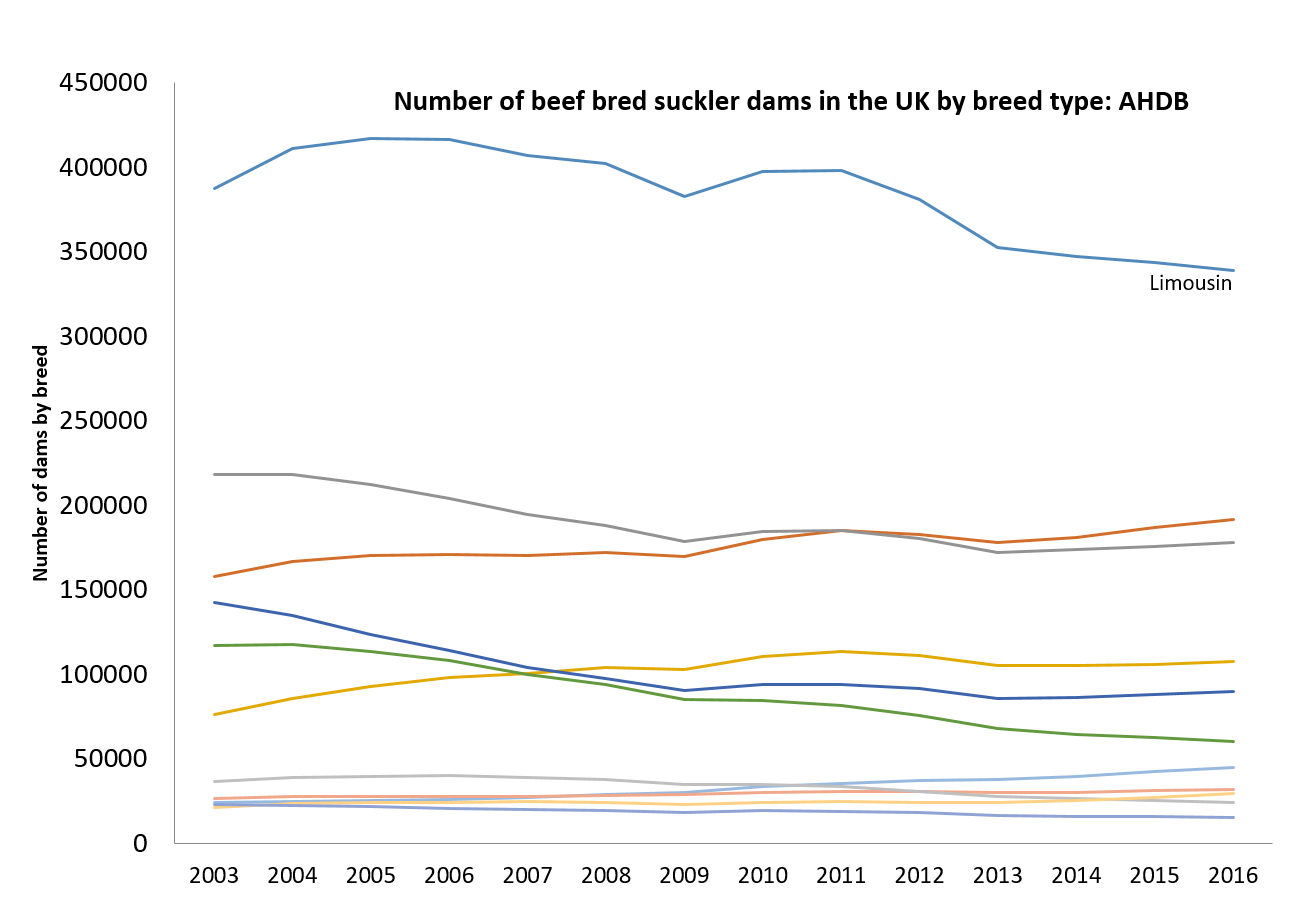 For over 20 years, the Limousin breed has been the single most dominant beef breed in the UK. It accounts for just under one third of all prime cattle slaughterings each year and just under one quarter of all beef-bred suckler cows in the country. The breed has critical mass within the sector; change at genetic level has potential to impact significantly on all parts of the supply chain and the breed improvement work we do is taken seriously and with industry responsibility (Figure 1).
