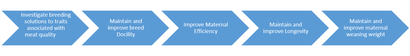 The work completed thus far is already offering income opportunity to those willing and able to adopt it. It has also successfully created a pathway that will enable the roll-out of investmentand activity within the other goal areas of the Breed Improvement Plan. This will ‘futureproof’ the breed’s performance in all sections of the supply chain and ensure that when market change comes, producers have the means and the genetics to quickly and successfully respond. Key to this will be working with partners in the wider beef sectors.