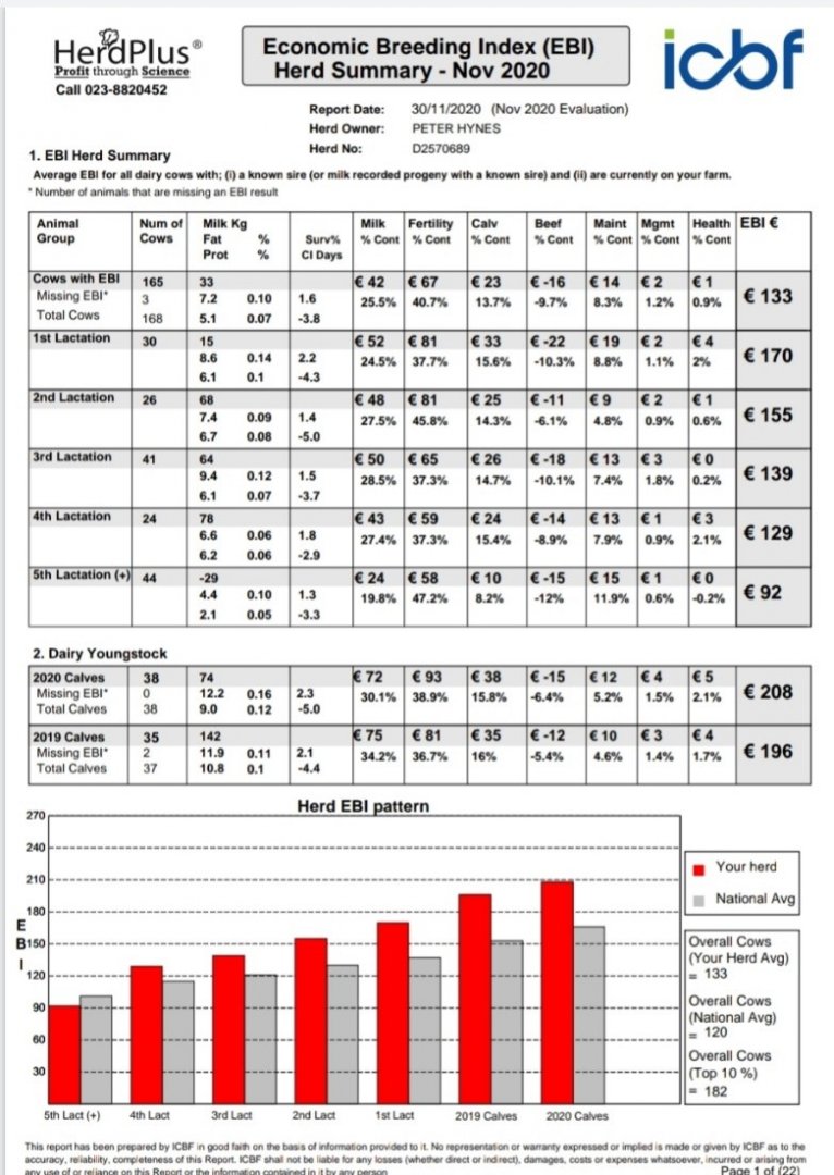 Our policy has remained the same over the last few years, use a team of elite genetic merit bulls, look at our herds requirements and match bulls to individual females depending on their genetic breakdown. Bulls must have a well-balanced EBI with a clear focus on fertility index, positive in kgs of milk with high constituents and health traits must be positive. Sires we have used over the last number of years include HZB, LWR, FR2298, FR4513, FR4728, FR4760 etc. but it is important to remember all these sires were used as first season sires.